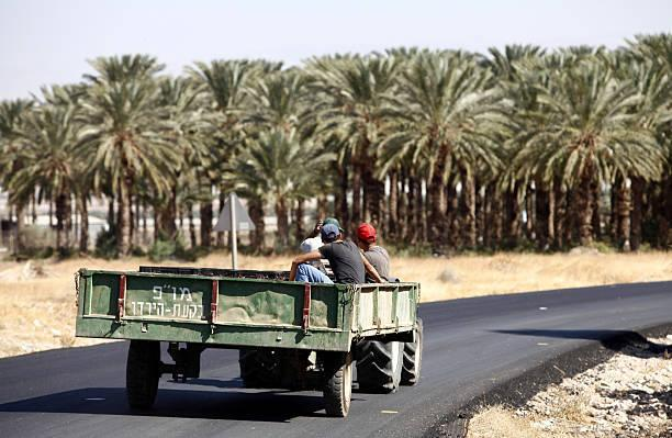 當地獨有的六輪裝載貨船,裝載著椰棗運回加工廠進行加工