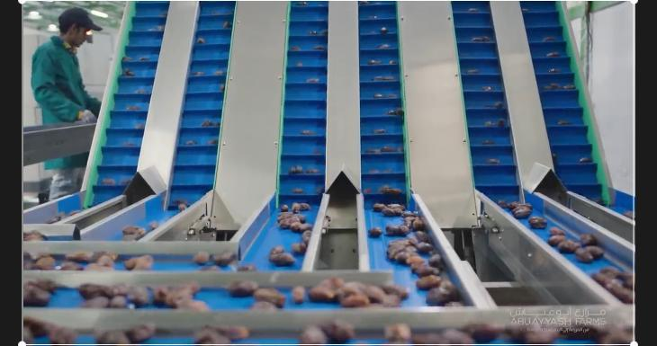 堆滿工廠的椰棗,倒入傳送帶由人工篩選壞掉的以及成色不佳不合格椰棗,每一道工序都嚴格按照標準進行