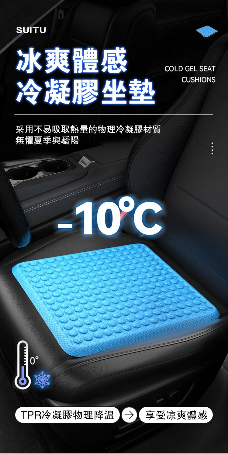 7分鐘前TPR冷凝膠降溫墊】❄溫度瞬降30℃防滑貼合座椅,冷凝膠隔熱技術,雙層製冷,四季通用~ - 【今日特價】1入組 NT$1180