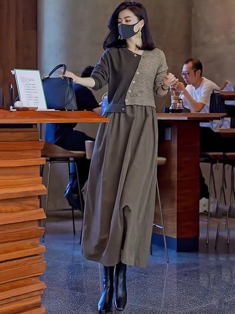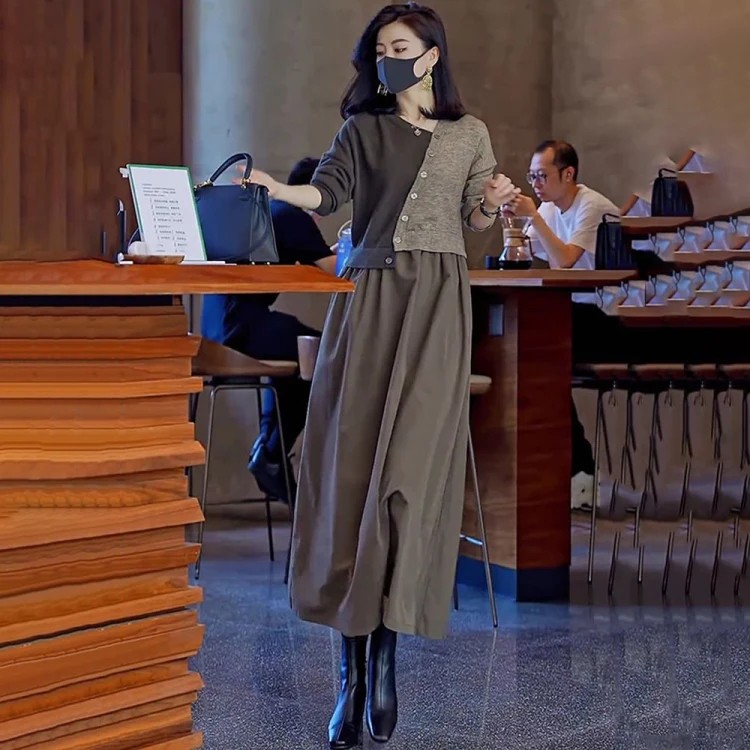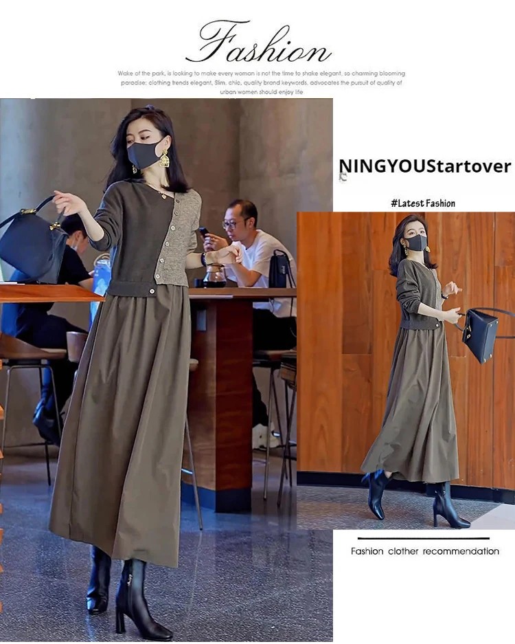 4分鐘前【限時活動 貨到付款】針織假兩件連衣裙,上身減齡顯氣質! - 一入組優惠價!NT1390