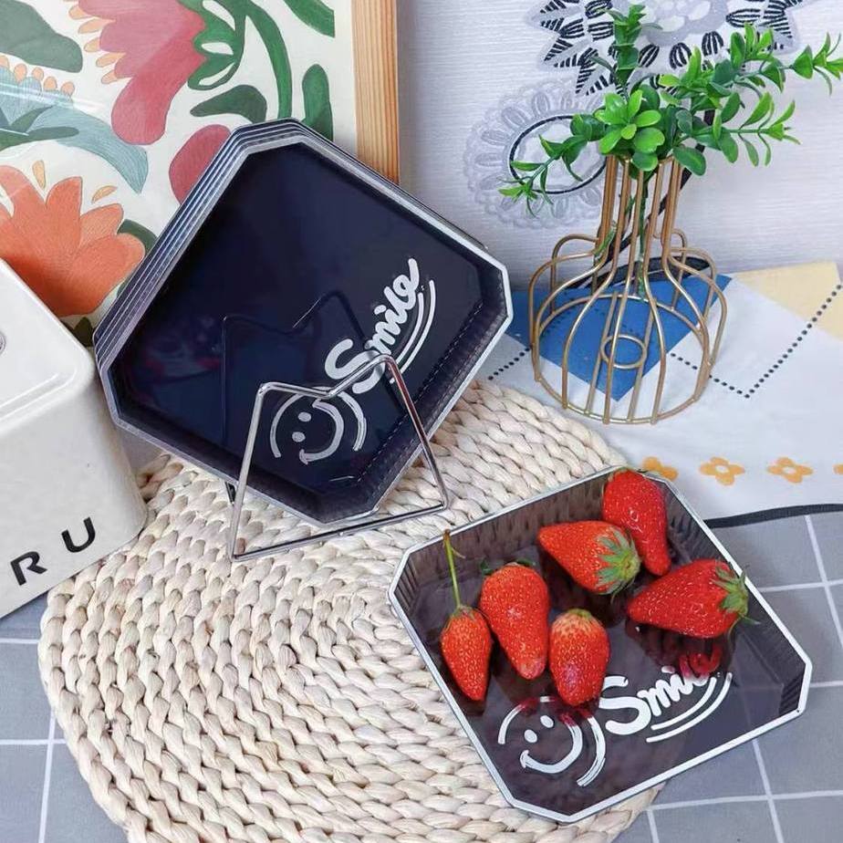 20分鐘前 輕奢風高顏值吐骨碟 笑臉盤家用水果盤零食碟餐桌吃飯垃圾吐骨盤 - 【 輕奢吐骨6碟+亞克力收納架】2入組- NT$1180